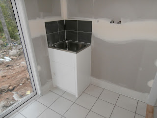 Laundry. These are a smaller version of our main floor tiles, very happy with the colour! |